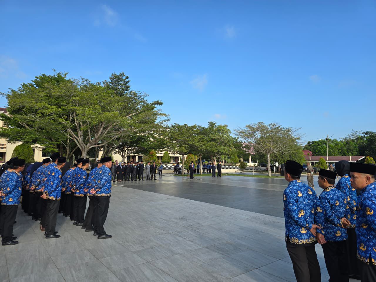 Kegiatan apel berlangsung dengan khidmat, ditandai dengan pembacaan sejarah singkat otonomi daerah sebagai pengingat perjalanan panjang implementasi desentralisasi di Indonesia.